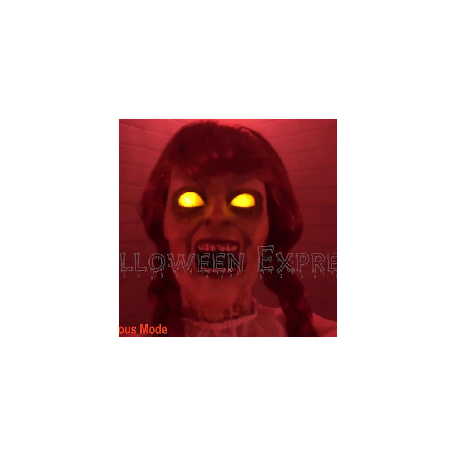 • SHRIEK-WORTHY ENTRYWAY DECOR: Place Halloween-themed decorations near your entrance to create a welcoming and festive atmosphere for guests and trick-or-treaters.• LEVEL UP YOUR OUTDOOR DECORATIONS: Use our bewitching decorations to enhance your outdoor space, creating a festive and spooky atmosphere for your yard or patio.• EYE-CATCHING ADDITION TO FRONT PORCH DISPLAYS: Arrange our wide variety of decorations on your front porch, creating a welcoming and festive scene for trick-or-treaters and guests.Product Description:The perfect addition to any haunted house or horror themed party! Standing at 32″ tall, this static dreadful doll prop features: Fade-on/off light-up eyes. Says one of three 0:09-second phrases with each activation of her motion/light sensor such as: “(Giggle) Lets play a game of life and death. I know where all the knives in the house are! Do you? And they ft.re sharp! Its amazing how simple it is to break your arm. Would you like to see?” Easy quick-connect push-button assembly . Posable arms. Requires 3 AAA batteries (not included).Special Shipping Information: This item ships separately from other items in your order. This item cannot ship to a P.O. Box. This item may be subject to additional processing days.ITEM IS NOT ELIGIBLE FOR EXPEDITED SHIPPING