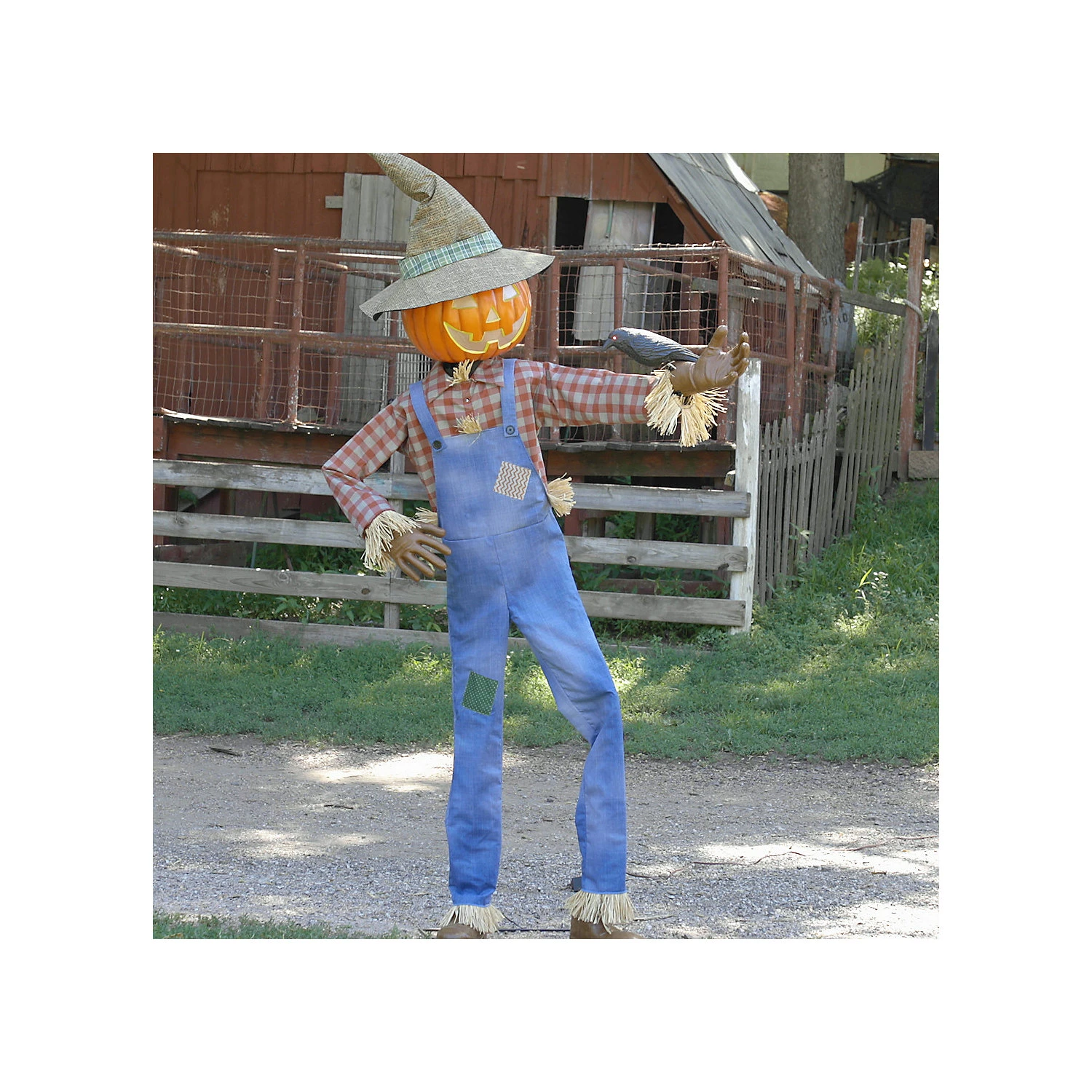 “Have a cheerful Halloween by adding this friendly 6-foot Whimsical Scarecrow to your décor this season. The Whimsical Scarecrow turns side-to-side and has a light-up JOL face and crow’s eyes. His whimsical sayings joyfully invite your guest in with smiles, serving as a friendly remainder to bundle yourself up and keep your pumpkins safe this year. Packaging: Box with Color Label