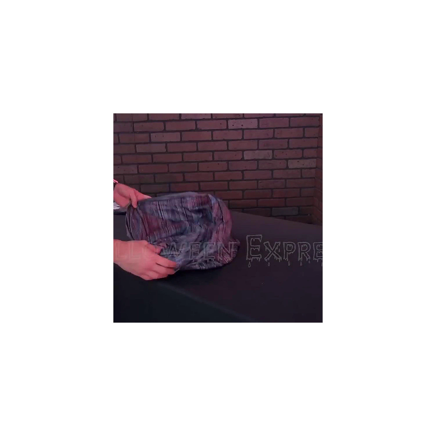 This creepy wood-look black coffin is perfect for visiting vampire guests! The 60-inch realistic-looking black wood planking is printed on weather-resistant polyester material. A black RIP screen-print graphic is on the lid, and the coffin features a flexible spring wire metal frame. Create and maintain the coffin shape by placing the six PVC support tubes into pockets at each of the 6 corners of the coffin. Includes a round zipper bag with handles and color paper label. Easy to fold up and store again for next season! Imported.