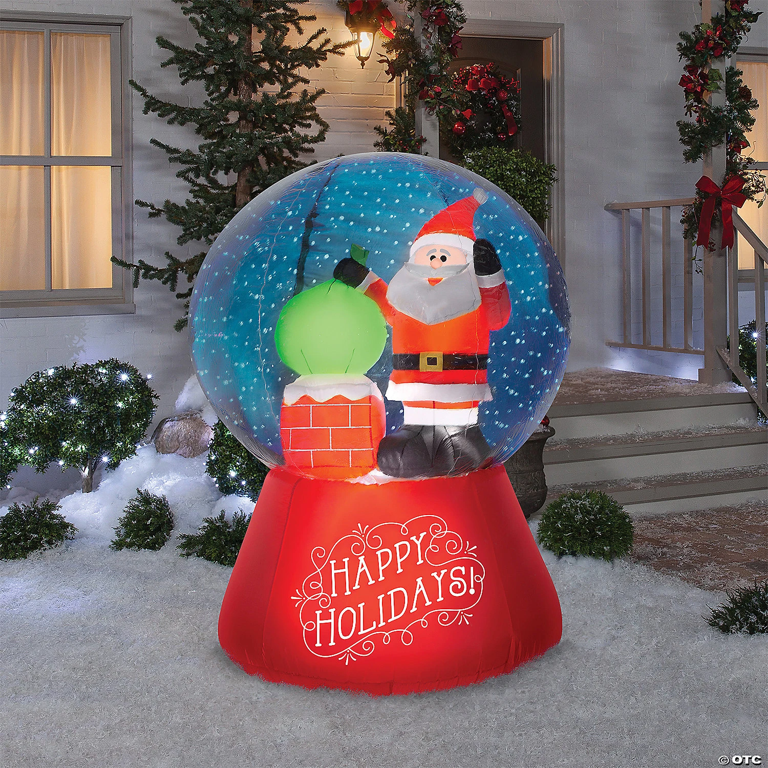 No shaking is required to make this Inflatable Globe snow! Our Snow Flurry Santa Snow Globe Airblown® Inflatable Yard Decoration will thrill children of all ages! Comes complete with everything you need to inflate, display and secure. Once inflated, the glowing C7 lights add cheerful illumination to the snow globe while the motor blows the snow on Santa’s head as he stands on the roof top. Self-inflates in seconds and comes complete with stakes and tethers for easy installation. Deflates in minutes and is easy to store. Safe for outdoor use. Just plug it in, stake it down, and watch the magic begin! Measures 49.21 inches x 47.24 inches x 66.14 inches.Special Shipping Information: This item ships separately from other items in your order. This item cannot ship to a P.O. Box. This item may be subject to additional processing days.ITEM IS NOT ELIGIBLE FOR EXPEDITED SHIPPING