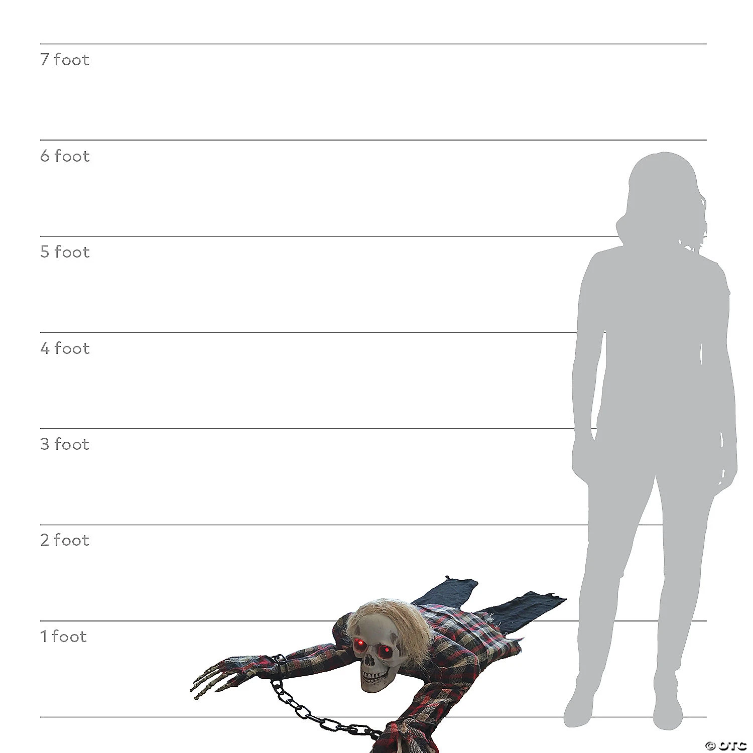 This little crawling skeleton will be the hit of the Halloween party! Just set him on the floor and let him loose. He will crawl all over scaring your guests!There is a light-activated hole in the nose so when something appears in front of the hole, he will come to life! The skeleton’s eyes will light up and he will drag himself forward making scary sounds. The skeleton is dressed in a plaid tattered shirt with black pants, stringy hair and has chains around his wrist. Very entertaining Halloween decoration! Measures 60″ long from top of finger tips to end of pant legs. Requires 3 AA batteries, not included.Special Shipping Information: This item ships separately from other items in your order. This item cannot ship to a P.O. Box. This item may be subject to additional processing days.ITEM IS NOT ELIGIBLE FOR EXPEDITED SHIPPING