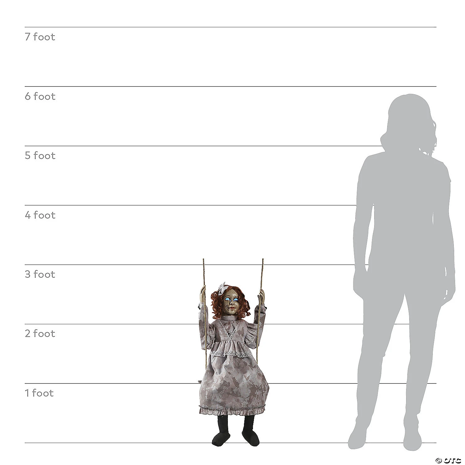 PropAdd some creepy decor to your Halloween when you bring home the Swinging Decrepit Doll! Hang from any pipe! This creepy prop features an infra-red sensor, hollowed out eyes that glow an other-worldly blue, and speaks haunting phrases to all passersby as her head turns side-to-side while she swings back and forth on her swing. Your haunted house will never be the same! Choose from Steady-On or Infra-Red Sensor activation options to operate UL power cord included The infra-red sensor works up to 6.5 ft. feet away works in all lighting conditions – bright light to no light! Item includes volume control. Assembly required. Doll is 30″ tall. Including swing mechanism, rope, and doll, total length is 65″.Special Shipping Information: This item ships separately from other items in your order. This item cannot ship to a P.O. Box. This item may be subject to additional processing days.ITEM IS NOT ELIGIBLE FOR EXPEDITED SHIPPING