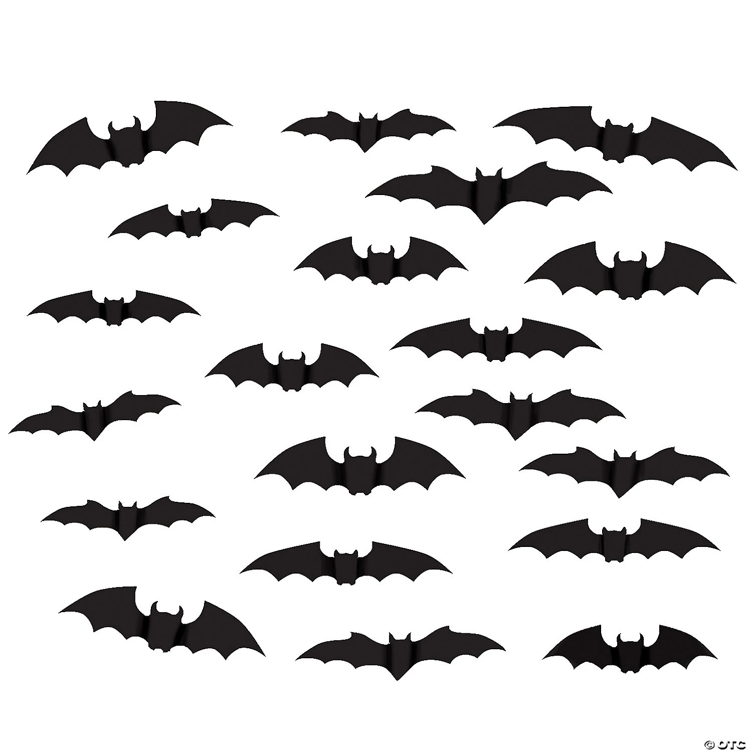 Bat Silhouettes Cutout Decorations. Create a spooky scene for your Home Halloween or School Display! 20 piece pack includes eight 10 bats, ten 12bats and two 14″ bats. Made of cardstock.