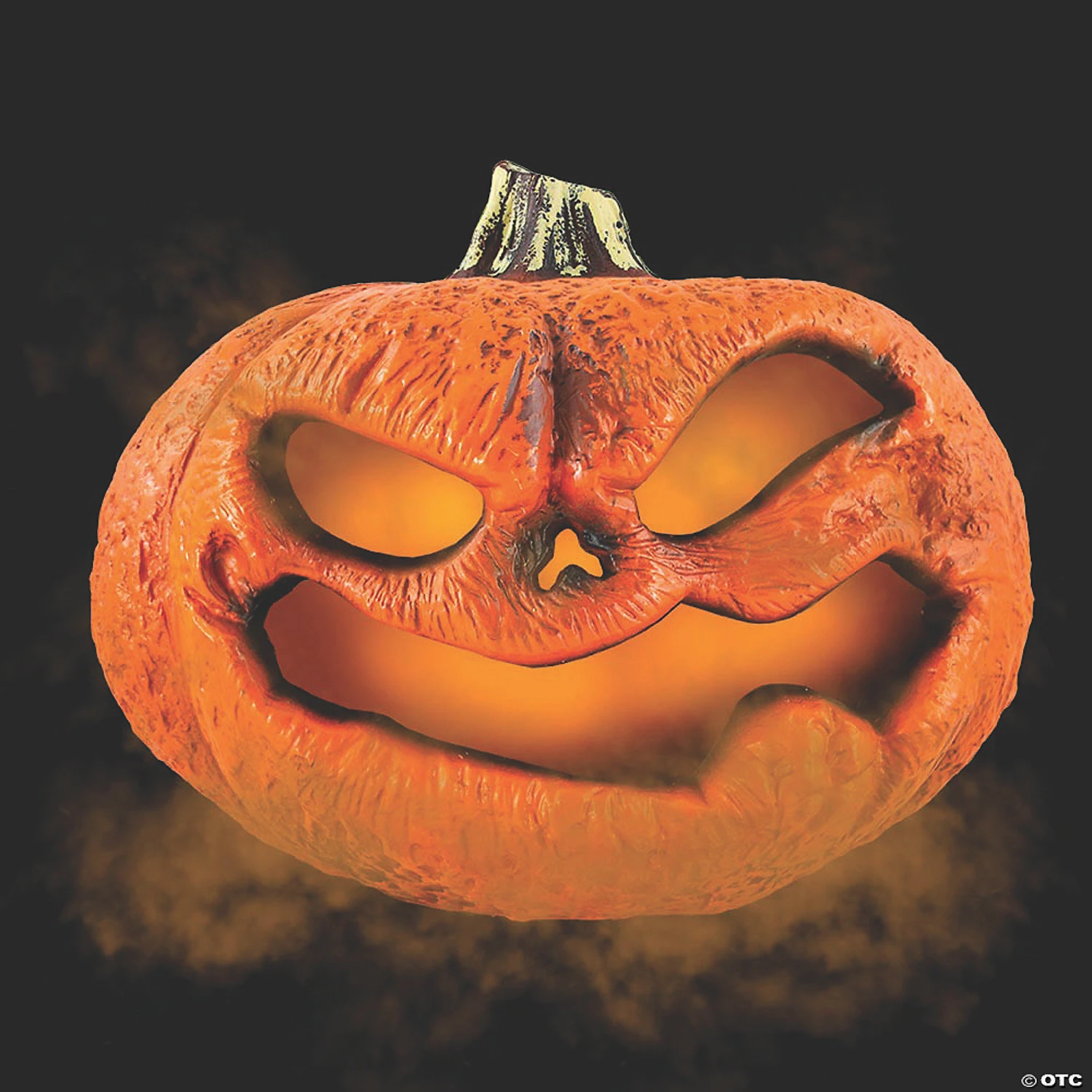Create an eerie illusion without the mess or danger of live flames. The LED light gives off a misty and fiery effect. A great addition to your Halloween home decorating. The LED Flickering Flame Rotted Pumpkin features a detailed evil rotted orange Jack-O-Lantern with realistic LED flickering lights. Requires 3 AA batteries (not included).