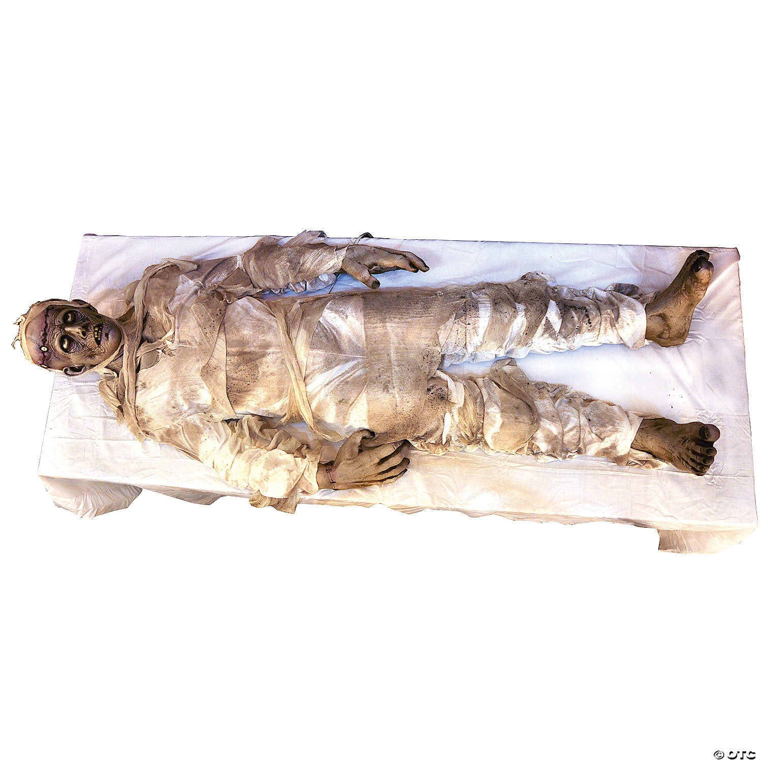 A great addition to your haunt! Works well with many mummy or lab scenes. Includes: Full size monster shakes as he ft.comes alive ft.! All electric and constructed of latex and foam with a metal armature and motor. Head and arms can be bent into position. Soundtrack CD included. Customer supplies the table (or floor) and CD player.