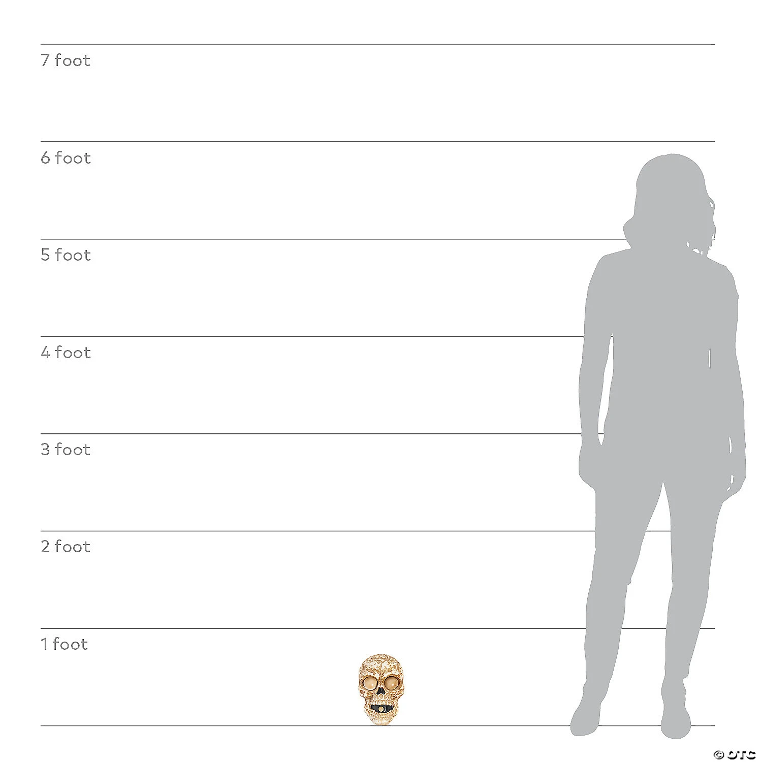 Create a spooky mood as soon as your guests ring your doorbell! Hang up our Light-Up Skull Doorbell on your door and watch your guests react to his scary warning to enter at your own risk! Includes: One Light-Up Skull Doorbell in an aged natural bone color with an open mouth where you find the actual button for the doorbell ringer. When activated, the doorbell sounds and the Skull’s Eyes light up with a bone-chilling red light and he speaks several phrases. Sureto make your friends jump! Approximately 7 1/2″ x 5″. Battery operated. On/off switch on the back. Has a hole for hanging on the upper back. Perfect way to set the mood as your guests enter your epic Halloween party!