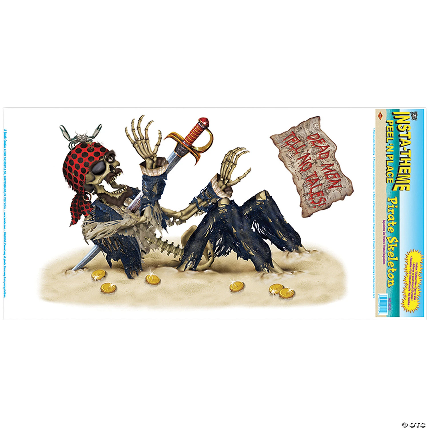 Insta-Theme . The is the perfect decoration for any pirate themed birthday party! Includes: Picture of pirate skeleton with sword through his chest while lying on the beach near sign that says “Dead men tell no tales”. Your fellow pirates and guests will love it! Measures 12″ x 24″.