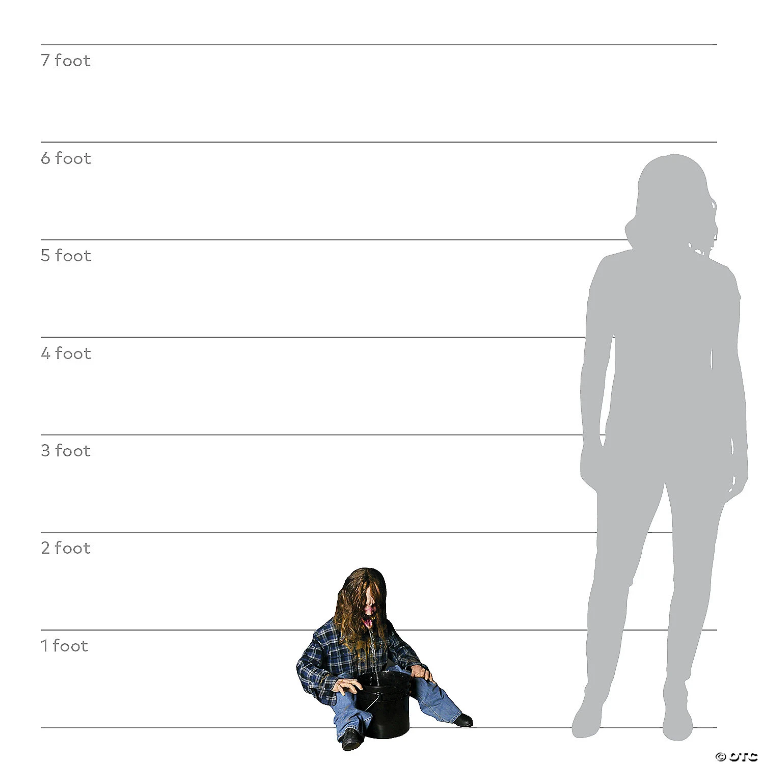 Nasty, hard to stomach sounds emanate from this guy as he upchucks. Add food color to the water in his bucket to make him extra vile. Foam filled latex prop with heavy duty metal armature and a Submersible Water Pump. Sit Puke on a chair with the bucket on his lap, or on the floor with the bucket in front of him. Legs, arms and head are poseable so that he can be positioned to ‘puke’ in to his bucket. Includes bucket and soundtrack CD. Chair not included. Requires AC power. Lifesize. Costume may vary. Boxed dims: 36x18x18