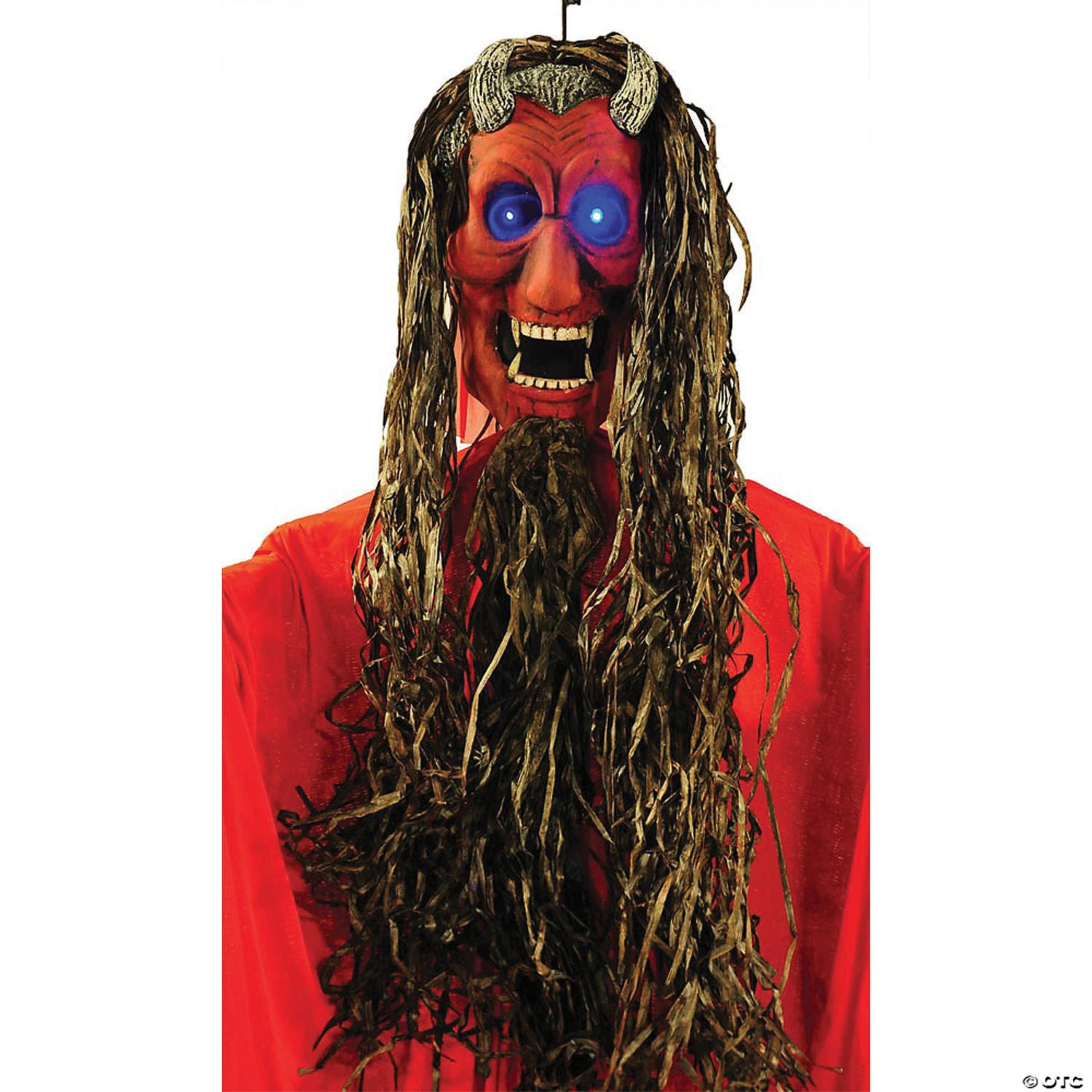 Bring your Halloween decorating ideas to life with the perfect Halloween prop for your haunted house or Halloween party! Easy to set up, this Red Hanging Fanged Demon will provide your Halloween home décor with the frights you crave. This is one tall demon! At 10 feet tall, this demon wears a red robe, has long hair, big fangs and posable arms.