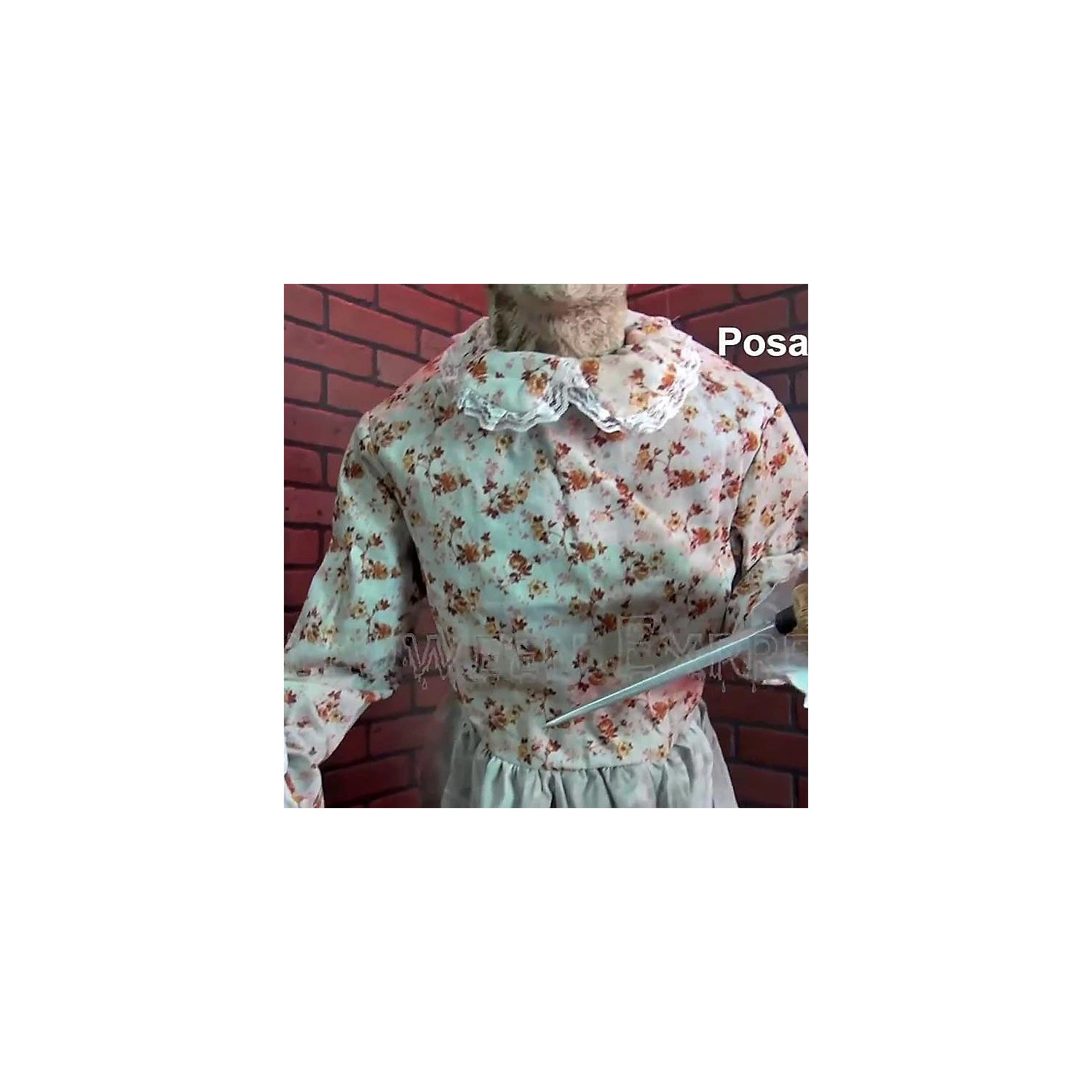 Yikes! Who invited Gruesome Granny to the Halloween party? This spooky Halloween decoration is perfect for your celebration, haunted house or just for making trick-or-treaters second-guess approaching your porch. 5 ft. tall static prop features push-button frame, poseable arms, full-length dress and plastic head with wig. Simple assembly required. Imported.